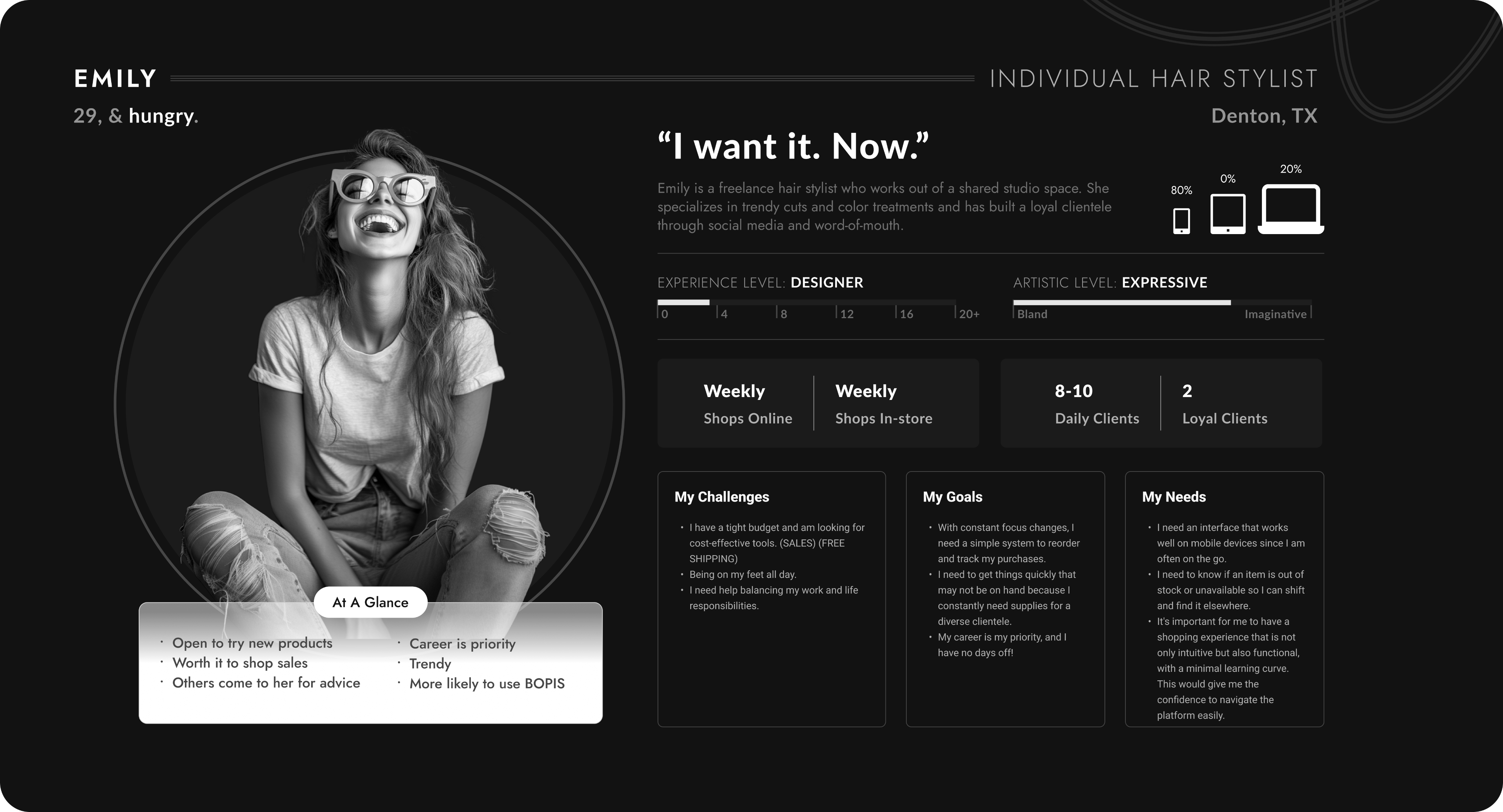 These personas were crafted to bring real voices, goals, and frustrations into the design process. These personas were created using real data and countless user tests.