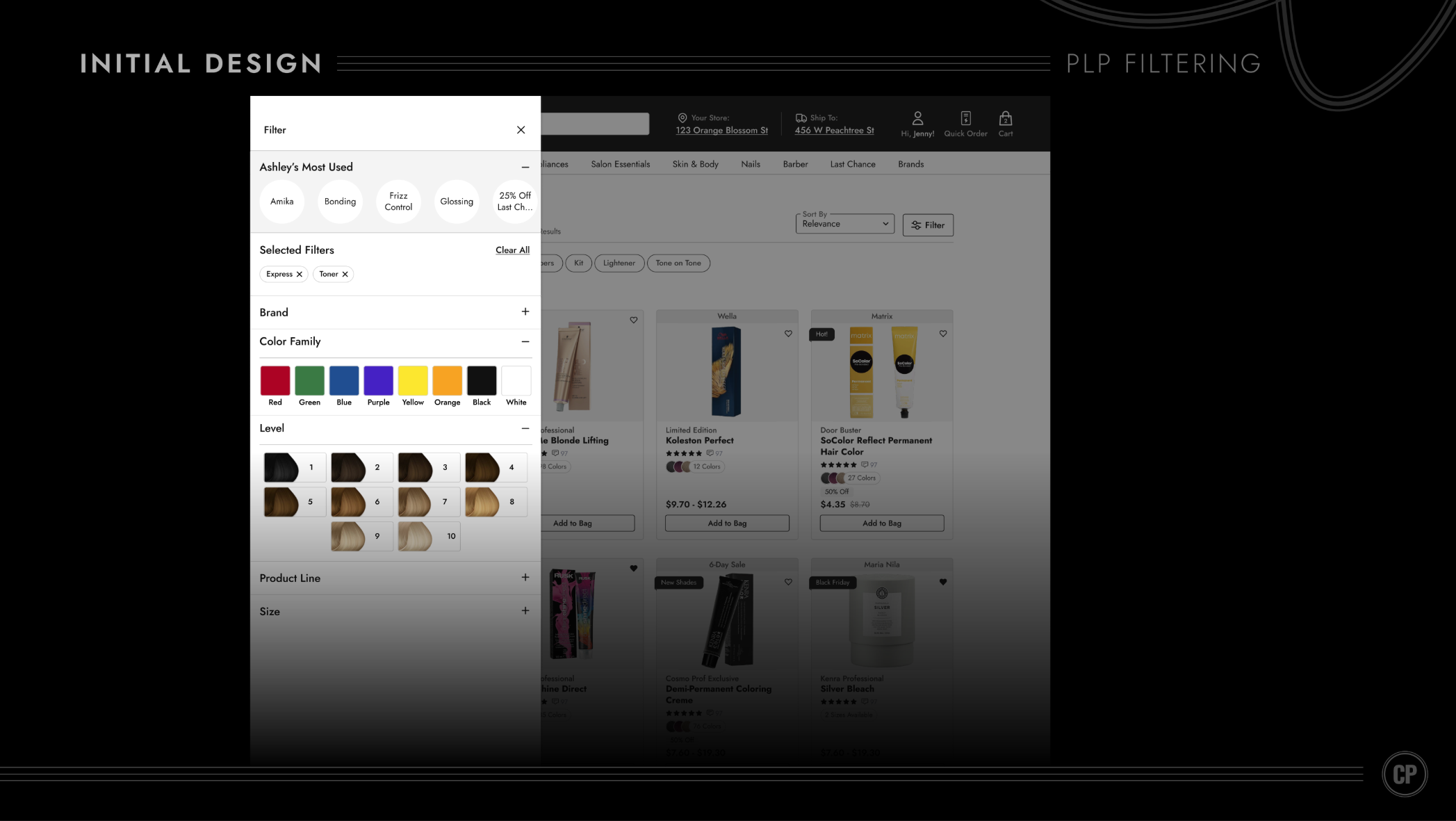 After several iterations, we landed on a clean, straightforward design. But here’s the nuance: our users aren’t typical shoppers—they’re licensed hair professionals (remember those personas from the start). For them, a basic color filter like “red, green, blue” doesn’t cut it. Pros think in terms of levels when it comes to hair shades, so I introduced a dedicated Level Filter (pictured above) to match their mental model.